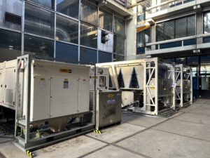 I totalt fem kjølemaskiner ble installert på campusområdet: